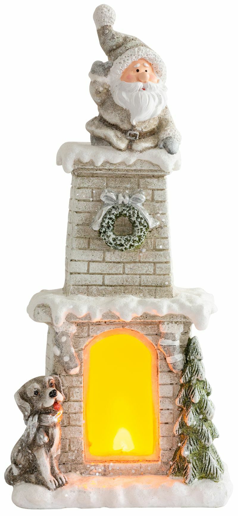 Dekorácia MagicHome Vianoce, Santa v komíne, krb, 9 LED, 3xAAA, keramika, 28x18,50x60 cm