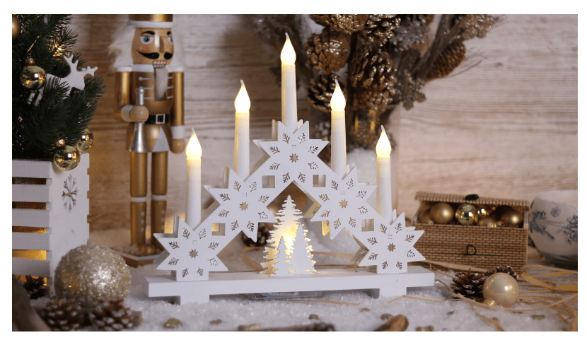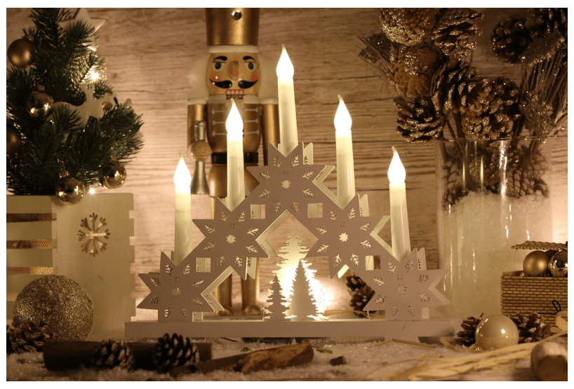 LED vianočné sviečky, hviezda, biela, drevená, 2xAA, 5LED,3000K 6x18h Timer