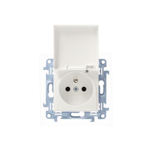 SIMON10 - zásuvka 2P+T, IP44, klapka vo farbe krytu, biela