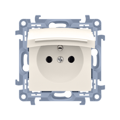 SIMON10 - zásuvka 2P+T, IP44, klapka vo farbe krytu, krémová